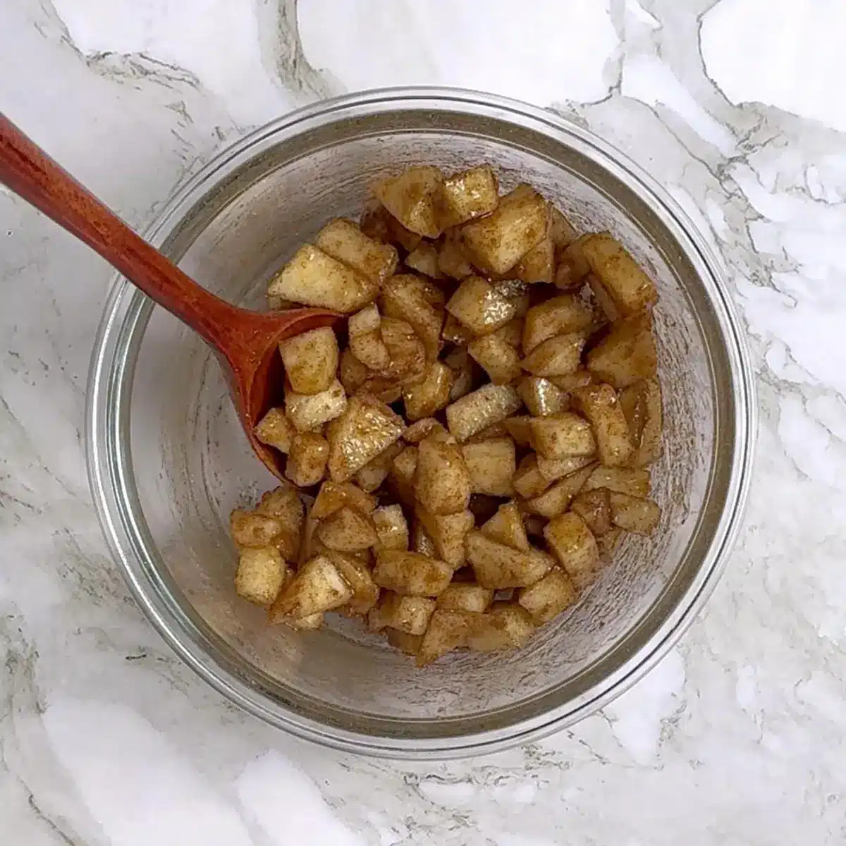 - In a bowl add chopped pear along with cinnamon and brown sugar, mix them and keep aside.
