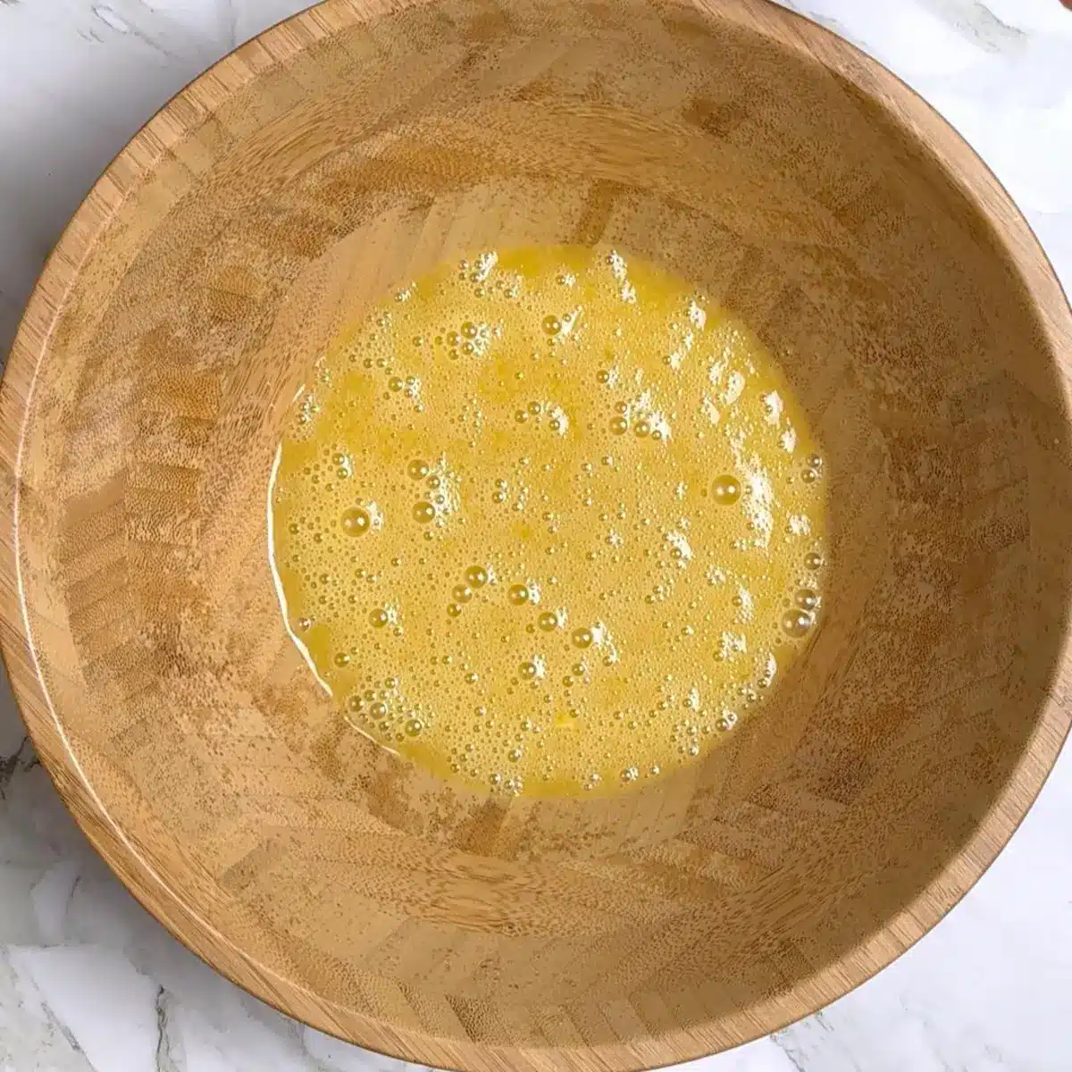 - Now another bowl beat the eggs with maple syrup, olive oil and vanilla then mix well.
